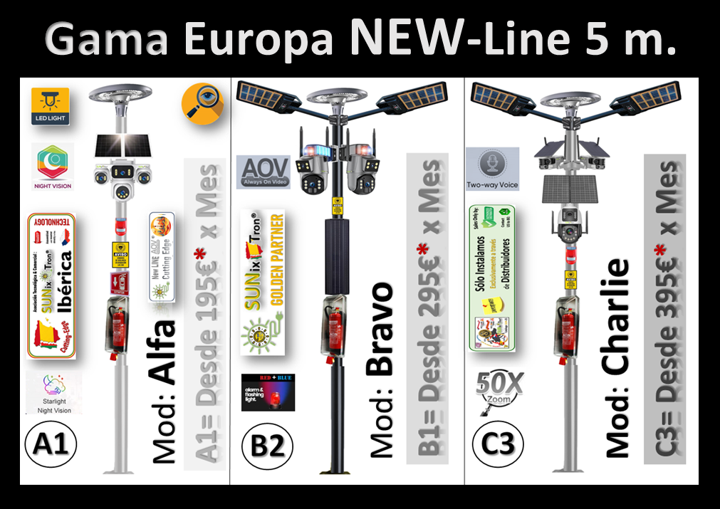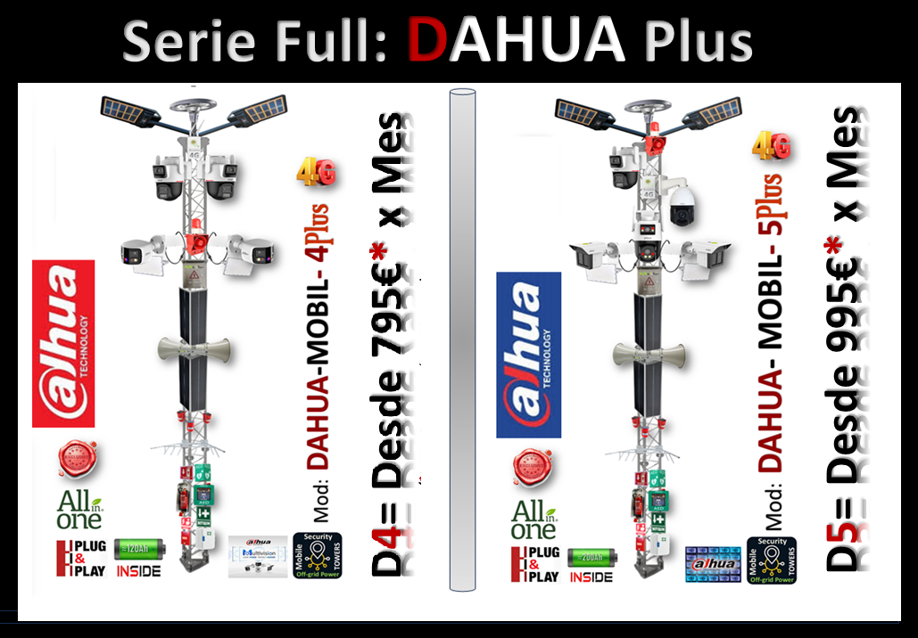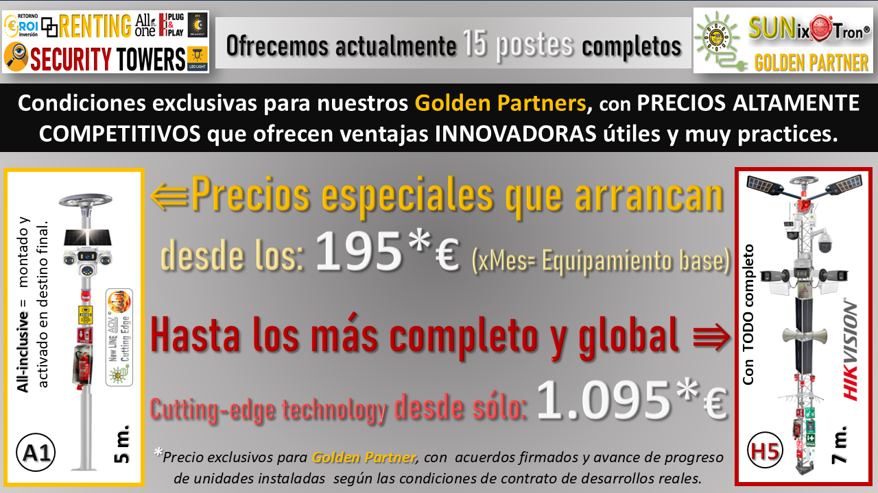 (CLICK AQUÍ PARA ABRIR) Cámaras de la última gama de HIKVISION en POSTES MOVIBLES de 5 metros de Altura, con dispositivos de acción directa y Equipos profesionales para ofrecer un conjunto de UTILIDADES que permitan PREVENIR + DISUADIR + CONTROLAR 24/7 cualquier tipo de áreas y zonas concretas. Incorpora un Extintor profesional para su uso...