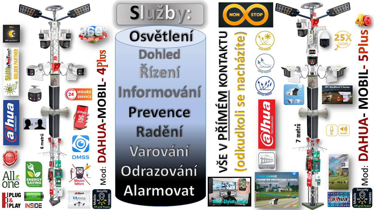 (KLIKNĚTE ZDE PRO OTEVŘENÍ) Nové TECHNOLOGICKÉ funkce z řady DAHUA a profesionální vybavení nabízejí sadu NÁSTROJŮ, které vám umožní PŘEDCHÁZET + ODRAŽOVAT + KONTROLOVAT 24/7 jakýkoli typ oblasti a specifické zóny, kde jsou také nabízeny PŘÍMÉ SLUŽBY pro pomoc a použití v případě různých typů NOUZOVÝCH situací.