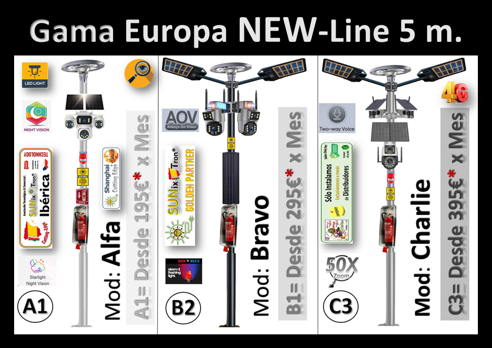 (CLICK AQUÍ PARA ABRIR) Tecnología de PUNTA en Cámaras Solares 4G- Always-on-Video, montadas en POSTES MOVIBLES de 5 metros de Altura, con dispositivos de acción directa y Equipos profesionales para ofrecer un conjunto de UTILIDADES que permitan PREVENIR + DISUADIR + CONTROLAR 24/7 cualquier tipo de áreas y zonas concretas. Incorpora un Extintor...